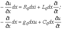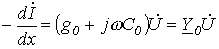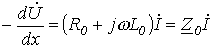 - соответственно комплексные сопротивление и проводимость на единицу длины линии.
