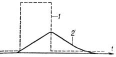 Рис. 3. 1 - входной прямоугольный импульс; 2 - выходное напряжение интегрирующей цепи при tдT.
