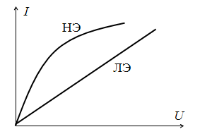 На рис. 1.1 изображены ВАХ линейного (ЛЭ) и нелинейного (НЭ) элементов.
