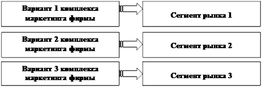 3. Концентрированный маркетинг. Многие фирмы видят для себя и третью маркетинговую возможность, особенно привлекательно для организации с ограниченными ресурсами. Вместо концентрации усилий на небольшой доле большого рынка фирма концентрирует их на большой доле одного или нескольких субрынков.