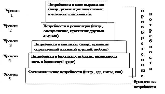 Мотивация. Мотив (или побуждение) – нужда, ставшая столь настоятельной, что заставляет человека искать пути и способы ее удовлетворения. Психологи разработали ряд теорий человеческой мотивации. Самые популярные из них – теория З.Фрейда и А.Мaслоу – предполагают совершенно разные выводы для деятельности по исследованию потребителей и маркетингу. З.Фрейд считал, что люди в основном не осознают тех реальных психологических сил, которые формируют их поведение, что человек растет, подавляя при этом в себе множество влечений. Эти влечения никогда полностью не исчезают и никогда не находятся под полным контролем. Они проявляются в сновидениях, оговорках, невротическом поведении, навязчивых состояниях и т.д. Т.е. человек не отдает себе полного отчета в истоках собственной мотивации.