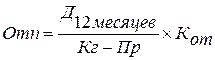 Кот – число календарных дней отпуска рабочего.