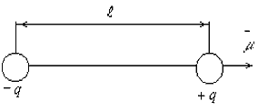 Рис. 1.3. Схематическое изображение диполя Диполем называют два равных, но противоположных по знаку, заряда, центры которых смещены на некоторое расстояние, называемое плечом диполя. Полярные молекулы характеризует величиной дипольного момента m = q×l, где q - суммарный