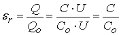 где Q д - дополнительный заряд, обусловленный поляризацией вещества. Учитывая, что заряд конденсатора Q = C·U, можно получить еще одну формулу, выражающую εr через значения емкостей: