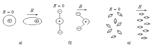 Электронная поляризация - смещение и деформация орбит электронов относительно атомных ядер (Рис. 2.3, а).