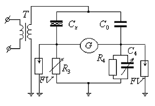 В два других плеча включаются переменное сопротивление R3 и постоянное сопротивление R4, шунтированное переменной емкостью С 4.