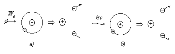 Фотоионизация представляет собой расщепление молекулы под действием поглощенной энергии фотона, т.е. энергии излучения (Рис. 5.2, б).