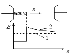 Рис. 5.9. Плазменный канал и распределение напряженности поля до его появления (1) и после (2)