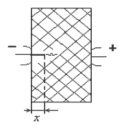 Свободные электроны, появляющиеся в основном за счет эмиссии с катода, под действием высокой напряженности электрического поля устремляются в глубь твердого диэлектрика. Однако, из-за высокой плотности твердых материалов глубина их проникновения x мала и в среднем составляет 0,05 см. Благодаря высокой энергии электронов, соударения их с молекулами вещества приводят к разрушению химических связей. В результате на небольшом участке происходит переход твердого диэлектрика в состояние частично ионизированной газовой плазмы. Появляется небольшой канал разрушения. Этот канал переносит высокую напряженность поля в глубь материала, поэтому эмиссия электронов происходит уже на новом участке диэлектрика (Рис. 5.10).