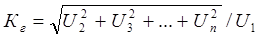 Ступінь нелінійних спотворень оцінюють коефіцієнтом гармонік Кг, який представляє собою відношення діючих значень амплітуд всіх вищих гармонічних складових до діючого значення амплітуди основної частоти (або першої гармоніки):
