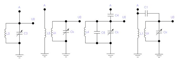 Рисунок 10.1. Схеми одно контурних підсилювачів радіочастоти.