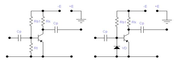 В таких схемах можливе включення двох резисторів з різними температурними коефіцієнтами замість базового дільника. Замість одного діода можуть включатися два або три або стабілітрони. В підсилювачах в інтегральному виконанні широко використовують діодно-транзисторні структури.