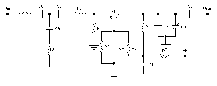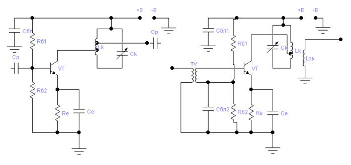 Мала прохідна ємність і малий вхідний опір такого каскаду гарантують стабільну роботу ПРЧ навіть при повному включенні резонансного контуру в коло колектора транзистора.