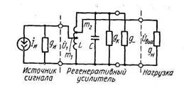 Регенеративним підсилювачемназивають пристрій, що забезпечує підсилення радіосигналів за рахунок внесення в електричний ланцюг негативного опору, що відповідає внесенню в цей ланцюг додаткової енергії. Енергія сигналу, що поступає з антени в коливальний контур, витрачається на втрати еквівалентного контуру, визначувані втратами в самому контурі і втратами в підключеному до контуру навантаженні. Якщо до контуру підключити двополюсник з негативним опором, то результуючі втрати в контурі зменшаться, при цьому потужність сигналу в навантаженні зросте. При рівності підключеного до контуру негативного опору власному опору контуру відбувається компенсація втрат у контурі. При цьому потужність сигналу з антени передається в навантаження (на вхід першого підсилювального або перетворюючого каскаду) без ослаблення. Якщо від’ємний опір, що вноситься в контур, більше власного опору контуру, тобто частково компенсує не тільки втрати в контурі, але і поглинання енергії навантаженням, то потужність сигналу в навантаженні більша, ніж потужність сигналу від антени, тобто відбудеться підсилення сигналу. Якщо від’ємний опір, що вноситься, повністю компенсує втрати еквівалентного контуру разом з навантаженням, то в контурі виникають незгасаючі коливання, тобто підсилювач перетвориться на генератор.