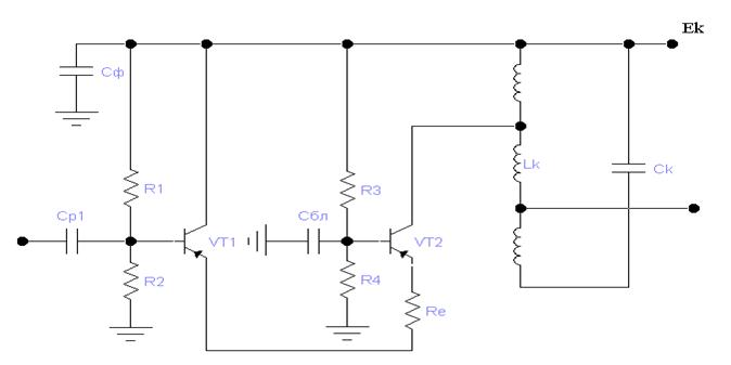 Рисунок 21.6.АО на двох транзисторах і спільному Rе.