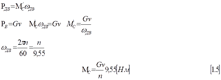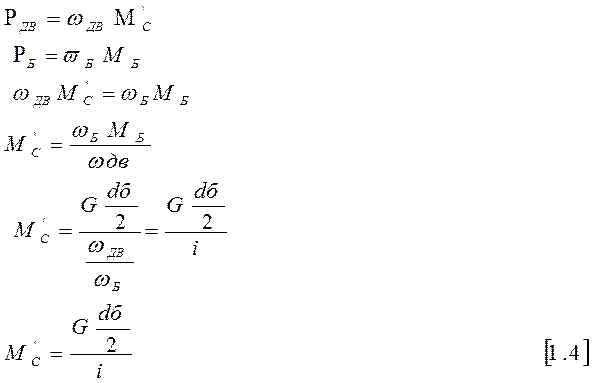 Условия вывода формул: Рдв = Рб, Мдв = Мс’.