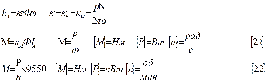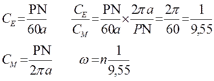В электроприводе отказываются от использования внесистемной величены n=об/мин и выражение ЭДС и электромагнитного момента приобретают следующий вид.