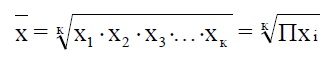 Средняя геометрическая простая (невзвешенная) опеределяется по формуле: