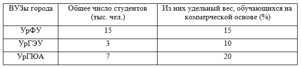 Задача 2. Имеется информация о численности студентов ВУЗов города и удельном весе (%) обучающихся студентов на коммерческой основе:
