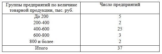 Задача 2. Имеется группировка предприятий по величине товарной продукции: