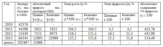 Средний уровень ряда определим по средней арифметической простой: Уср=202467:4=50616,75 тыс. долларов США.