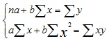 | Система нормальных уравнений способом наименьших квадратов для определения коэффициентов a и b | |