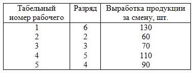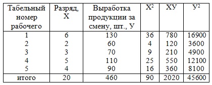 Задача 1 (анализ прямолинейной связи при парной корреляции). Имеются данные о квалификации и месячной выработке пяти рабочих цеха: