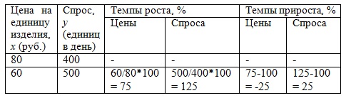 Задача 2. На предприятии цены на изделия снижены с 80 руб. за единицу до 60 руб. После снижения цен продажа возросла с 400 до 500 единиц в день. Определить абсолютную и относительную эластичность. Сделать оценку эластичности с целью возможности (или невозможности) дальнейшего снижения цен.