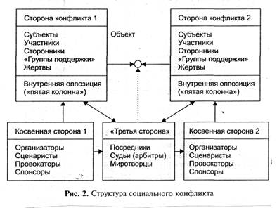 В упрощенном виде структура социального конфликта может быть представлена следующими элементами: