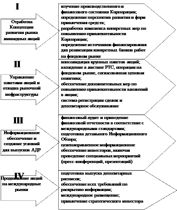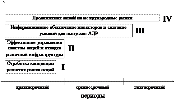 Ключевым моментом при отработке Концепции развития ликвидного рынка акций является формирование необходимых пакетов акций для выполнения той или иной задачи в процессе вывода ценных бумаг на внутренний и внешний фондовые рынки.
