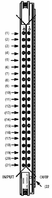 | (1) – (21) Сигналы данных 2 Мбит/с; (22) ДСД | (1) Разъем для каналов 1 – 7; (2) Разъем для каналов 8 – 14; (3) Разъем для каналов 15 – 21; (4) ДСД | (1) ДСД |