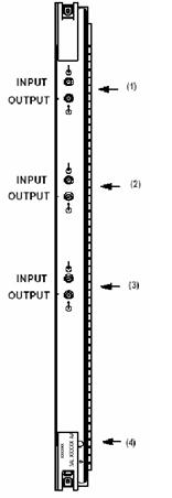 | (1) Канал 3 - электрический или оптический модули STM-1; (2) Канал 4 - электрический или оптический модули STM-1; (3) ДСД | (1) Канал 1; (2) Канал 2; (3) Канал 3; (4) ДСД | (1) Канал 1; (2) Канал 2; (3) Канал 3; (4) Канал 4; (5) ДСД |