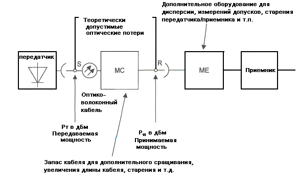 На рисунке 5.1 представлена структурная схема тракта, в соответствии с которой определяются параметры того или иного оптического интерфейса.