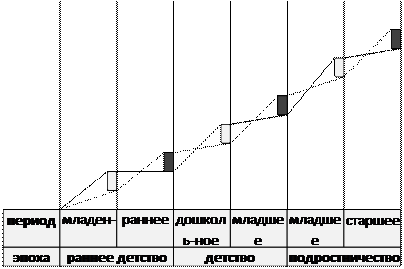 интеллектуальная сфера личности; возрастными новообразованиями, формирующимися в конце периода, среди них выделяется центральное, наиболее значимое для последующего развития. Границами возрастов служат кризисы — переломные моменты в развитии ребенка.