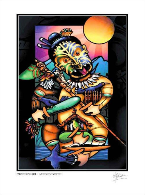 В общем, не буду много комментировать, а предлагаю вам самим оценить творчество Уоррена. Добавлю только, что Уоррен Похату многие годы серьезно увлекается мифологией маори – он издал и сам иллюстрировал несколько книг маорийских мифов и легенд. И именно поэтому в его рисунках часто фигурируют фольклорные персонажи и известные сюжеты традиционных мифов маори.