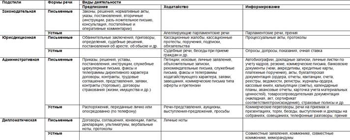 Таким образом, сфера применения деловой речи может быть представлена как широкая сеть актуальных официально-деловых ситуаций и как набор соответствующих жанров документов.