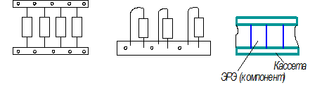 1) сборка ЭРЭ со штырьевыми выводами (вывод вставляется в отверстие ПП);