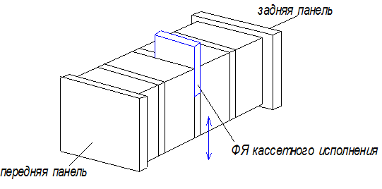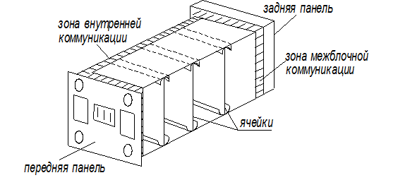 Блок стеллажной конструкции с вертикально-продольным и горизонтальным расположением монтажной панели: