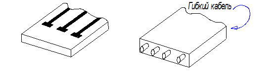 Электрическое соединение ячеек с выходными межблочными разъемами типа РП или РСГ осуществляли жгутовым проволочным монтажом, а сейчас – гибким шлейфом – это гибкие полоски из лавсана (ФДЛ) или полиимида (ФДИ) толщиной h=200…300 мкм с печатными проводниками и контактными площадками.