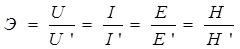 U, I, E, H – напряжение, ток, напряжение электрического поля и магнитного поля в экранируемой области до введения экрана.