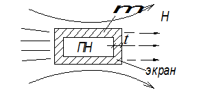 Силовые линии магнитного поля помехи Н замыкаются в основном в толще экрана, который должен обладать малым магнитным сопротивлением и лишь частично попадают внутрь экрана. Этот вид экранирования называется магнитным шунтированием. Эффективен на низких частотах и постоянном магнитном поле.