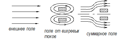 Рассмотрим одну из особенностей этого вида экранирования. С ростом частоты растет величина вихревых токов в материале экрана и наблюдается вытеснение внешнего поля помехи полями вихревых токов.