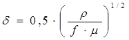 Толщина скин-слоя находится по формуле: