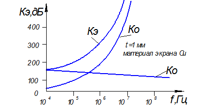 Коэффициент электромагнитного экранирования представляют в виде суммы 2-х составляющих: Кэ =Ко + КП, где