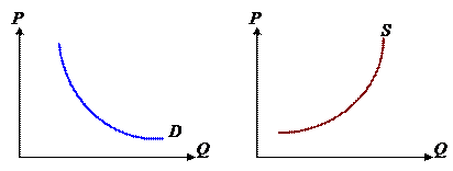 Рис. 1а – Кривая спроса Рис. 1б – Кривая предложения