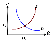 Рыночное равновесие изображается с помощью кривых спроса и предложения.