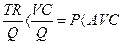 Правило закрытия (банкротства) гласит, что если переменные издержки (VC) не покрываются доходом от реализации продукции (TR), то предприятие должно прекратить производство (TR<VC). Разделив обе части неравенства на Q, получим иную интерпретацию правила закрытия: