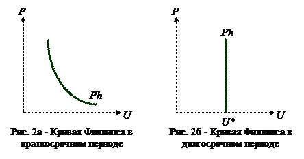 Зависимость между инфляцией и безработицей отображает кривая Филлипса. Эта связь обратная. Но М. Фридман и Э. Фелпс сделали вывод, что представление о долгосрочном альтернативном соотношении между инфляцией и безработицей является иллюзорным. Их утверждение гласит: в долгосрочном плане экономика будет двигаться к естественному уровню безработицы и независимо от темпа изменения заработной платы и темпа инфляции.
