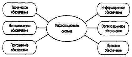 Среди обеспечивающих подсистем обычно выделяют: информационное, техническое, математическое, программное, организационное и правовое обеспечение (см. рис.4).