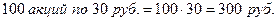 Однако надежды инвестора А связаны с возможным повышением цены акции. Предположим, что курс акций «N» повысился до 30 руб. В этом случае балансовый отчет инвестора А имеет вид